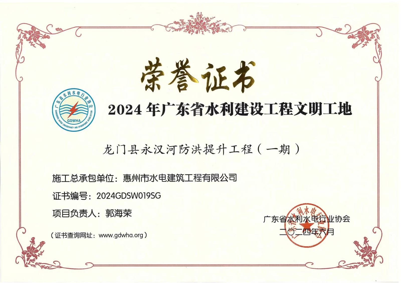 惠州市水電建筑工程有限公司成立于一九六四年四月,隸屬惠州市水務集團有限公司,是一家國有綜合性施工企業(yè),主營水利水電工程、房屋建筑、市政工程等施工業(yè)務。公司擁有水利水電工程施工總承包一級、建筑工程施工總承包一級、市政公用工程施工總承包一級、公路工程施工總承包三級,公路路基、路面及建筑裝修裝飾專業(yè)承包二級,環(huán)保工程、機電安裝、河湖整治、輸變電工程專業(yè)承包三級等經營資質……